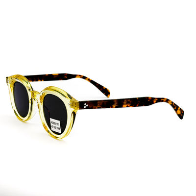 The frame size for these Acetate Sunglasses is 45-25-148, and the temple length is 148mm. This makes them a perfect fit for most face shapes and sizes. The frame style is fashion/classic, making them versatile and suitable for various occasions and outfits. The eye shape is round, which makes them a trendy choice for those who prefer a modern look.